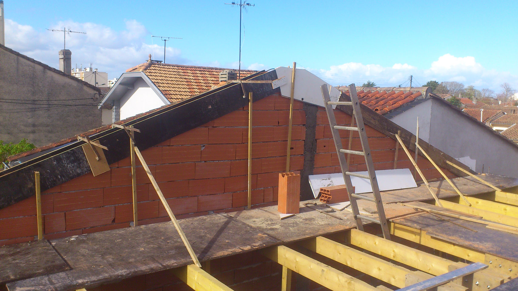 Élévation des murs du 2ème étage et réalisation de la toiture